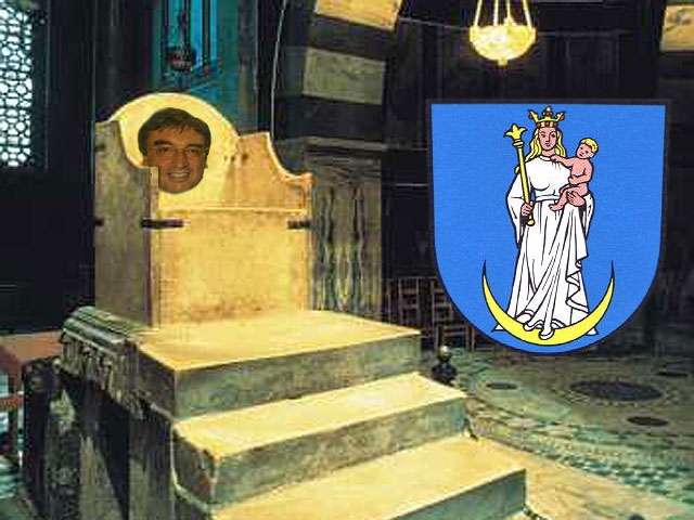 Gibt die Empore im Bürgersaal Walters Thron? (Bild: Satirische Photo-Collage)