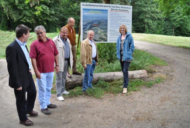 Auf dem Damm in Sachen Hochwasserschutz: Gottfried Trogus, Dr. Frank Siebenbürger, Kerstin Andreae, Lothar Neumann, Karl- Anton Hanagarth und Christoph Mersinger (v.l.n.r.) (Bild: J. W. Steckmeister)