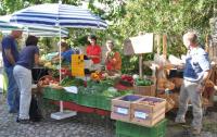 Manchmal sind die Frauen eben doch an allem Schuld - so zumindest auf dem Wagnerhof. Denn, das betonte August Wagner in seiner Eröffnungsrede, ohne seine Frau Rosi wäre er weder bei den Grünen noch bei BIOLAND gelandet. Seit dem er den Hof im Jahre 2009 von seinen Eltern übernommen hat, produziert Wagner nach den Kriterien der BIOLAND- Landwirtschaft. Neben seiner Frau und seinen Kindern dankte Wagner vor allem seiner Mutter, die zwar manchmal angesichts des ungewohnten Unkrauts auf dem Acker „die Hände über dem Kopf zusammen schlägt, aber uns einfach machen lässt.“ Was BIOLAND bedeutet, erklärte anschließend der landwirtschaftliche Berater des ökologischen Anbauverbandes,  Mathias Becker. Entstanden nach dem Zweiten Weltkrieg praktizieren die BIOLAND- Bauern die organisch- biologische Anbaumethode sowie artgerechte Tierhaltung. Das heißt vor allem keine Verwendung von chemischen Düngemitteln, Spritzmitteln und Tierfutterzusätzen, nachhaltige Landwirtschaft und Verzicht auf Massentierhaltung. „Ökolandbau“, so Becker, „ist in der heutigen Zeit aktueller denn je.“ Umso erstaunlicher sei es, dass die biologisch produzierenden Betriebe immer noch eine Minderheit darstellten. Am Vergleich zwischen dem kleinen Wagnerhof und einer kleinen Biene schilderte Becker, wie viel auch der winzigste Baustein in der Gesamtheit bewirken kann. Der Auftrag der Biene, so Becker, sei das Überleben der nächsten Generation. Dies haben sich auch die BIOLAND- Bauern auf die Fahne geschrieben, denn, so beendete Becker seine Ausführungen, „wir haben die Äcker nicht von unsren Vätern geerbt, sondern von unseren Kindern geliehen.“