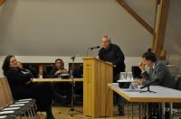 Zum ersten Schwerpunktthema, der Wasserversorgung, wurde Hydrogeologe Andrzej Pikulski, der in Umkirch die Trinkwasserbrunnenbohrungen geleitet hatte, ans Rednerpult gebeten. Leider hatte Walter Laub wohl verabsäumt, dem Fachmann für Wasser und Gestein die Sache mit dem „zügig Abhandeln“ nahe zu bringen. Mit einer Begeisterung, die wohl nur ein Hydrogeologe teilen kann, brachte Pikulski Umkirchs Gesteinsschichtenaufbau an den Mann und die Frau. Spätestens bei der Hauptrogensteinformation angelangt, fühlte sich so mancher bestimmt in den beliebten Geografieunterricht zurückversetzt, als man sich die Zeit mit dem Abschreiben von Mathehausaufgaben oder Skat- Spielen zu vertreiben suchte. Nach einer ausführlichen Erläuterung des Umkircher Brunnenbaus stand fest: Umkirchs Trinkwasserversorgung hat nun ein sprudelndes zweites Standbein im Gewann „Schorren“. Das Wasser hat „Mineralwasserqualität“ und muss im Gegensatz zum bisherigen Wasser nicht aufbereitet werden. Im Oktober 2010 waren die Brunnenbauarbeiten abgeschlossen worden. Lediglich die 2, 5 Kilometer lange Wasserleitung bis zum Umkircher Wasserwerk muss noch verlegt werden. „Der neue Tiefbrunnen wartet nur auf den Anschluss“, beendete der erste Referent des Abends seine Ausführungen, die im Publikum keine Fragen offen ließen.