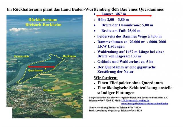 Während der für den Polder Burkheim vorgesehene Querdamm mit vier Durchlassöffnungen in der Größe von Einfamilienhäusern für die Mitglieder der BI „unvorstellbar“ ist, so ihr 1. Vorsitzender Lothar Neumann, schwankten die Vertreter der Umweltschutzverbände in ihrer Sicht auf den Riesenerdwall.