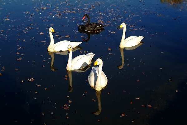 Für Fotograf sind sie hintereinander im Spalier geschwommen: die Sing-Schwäne des Queen-Auguste-Victoria-Parks