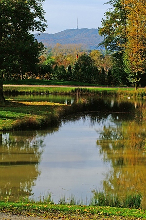 Blauer Schlossteich im Herbstlicht des Queen-Auguste-Victoria-Park