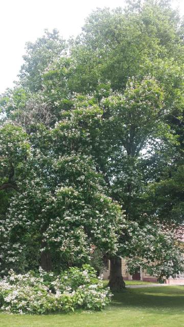 Die Umkircher Mutter der jungen Baum-Schönheiten: Der Trompetenbaum Catalpa im Schlosspark der Fürsten von Hohenzollern.