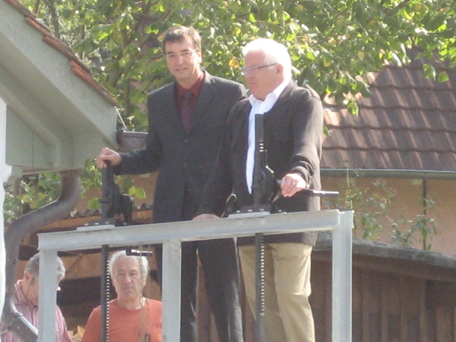 Sie drehten an den Schrauben und öffneten die Wasserschleuse: BM Walter Laub und BM Seurot