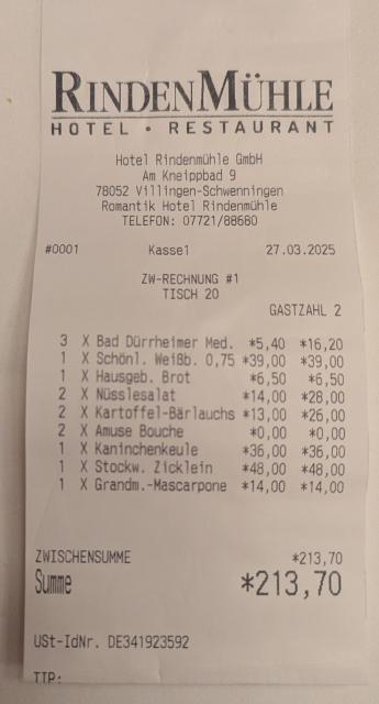 Eines der besten Restaurants im Schwarzwald-Baar-Kreis: Das Romantik-Hotel Rindenmühle in Villingen!  18109  27.03.2025