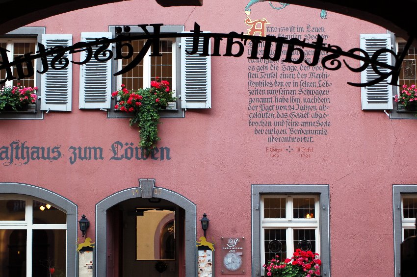 "Anno 1539 ist im Leuen zu Staufen Doctor Faustus so ein wunderbarlicher Nigromanta gewesen, elendiglich gestorben und es geht die Sage der obersten Teufel einer, der Mephistopheles (...)"